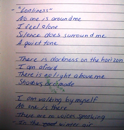 Please remember: I am about 11 or 12 when I wrote the poems below (except for my traditional on-the-spot). I think I was a little too dramatic when I was younger. And that’s all I’m gonna say.