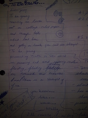 In class I have a tendency to doodle, but tonight was a little different. I took phrases and bits of what my teacher said, of what classmates said, and morphed them into the poem below.